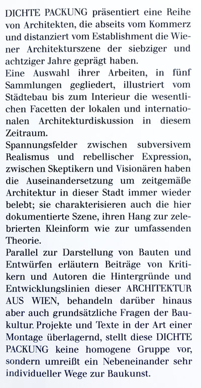 Dichte Packung Otto Kapfinger, Franz E. Kneissl: Dichte Packung, Architektur aus Wien. Residenz Verlag, Wien 1989